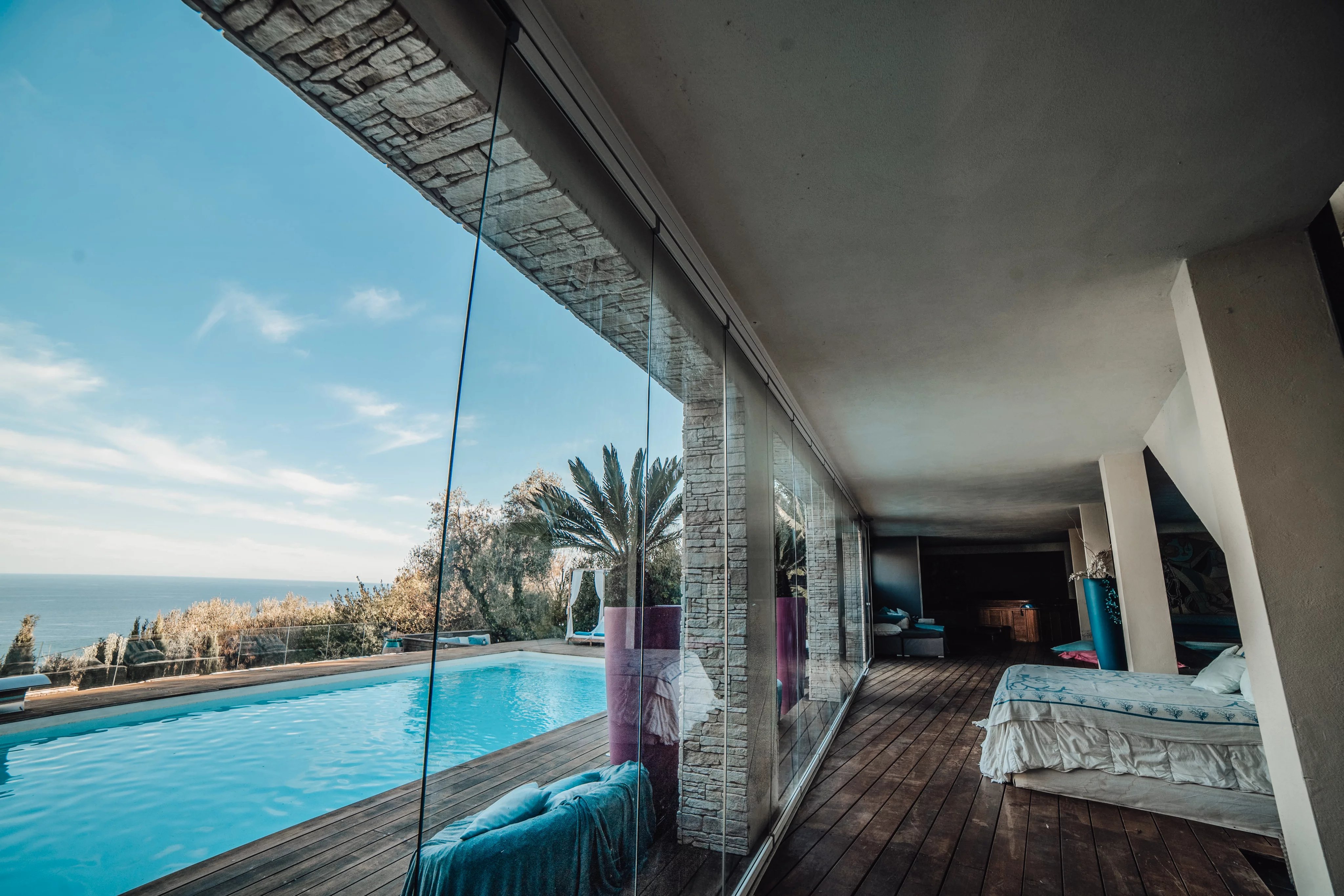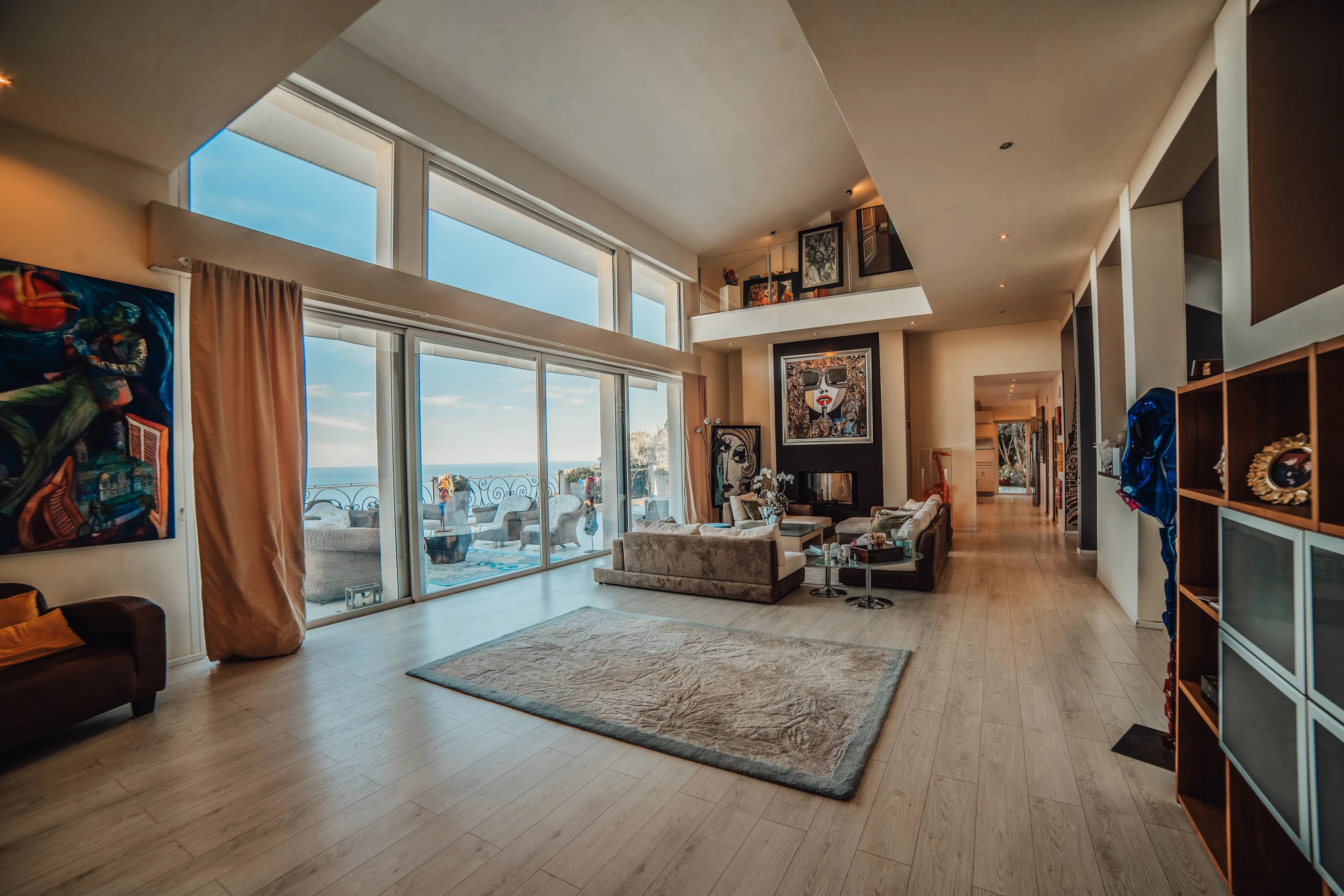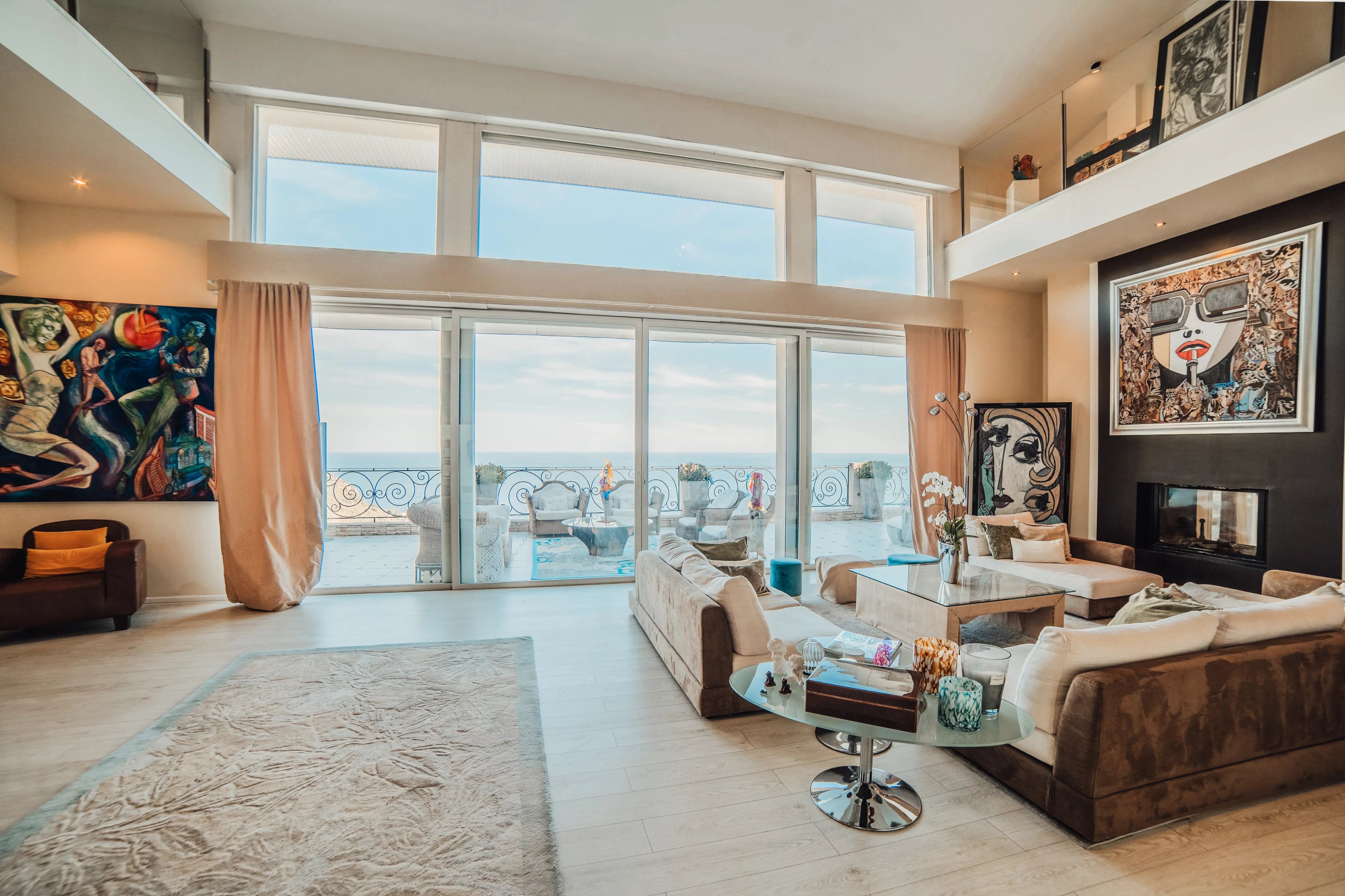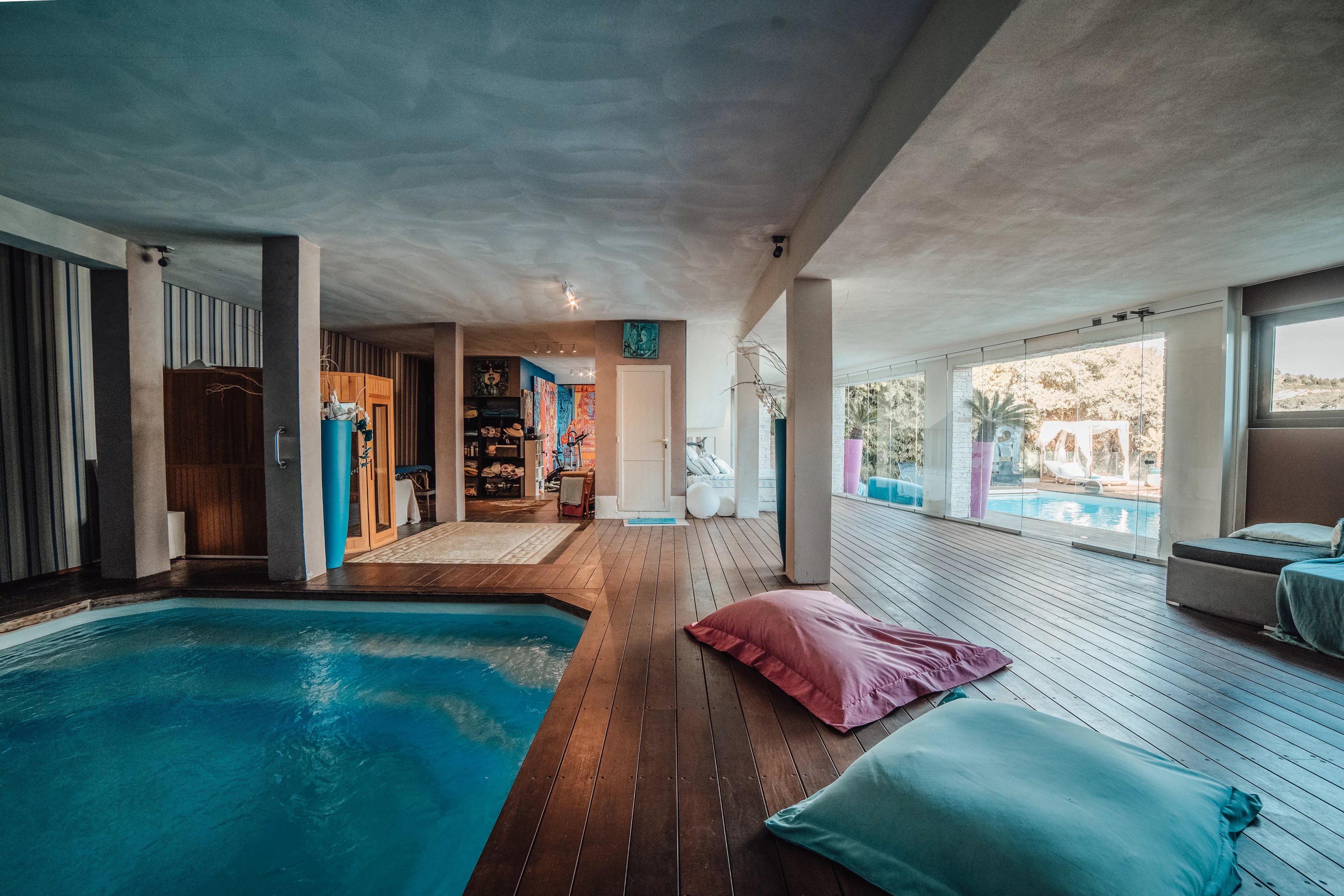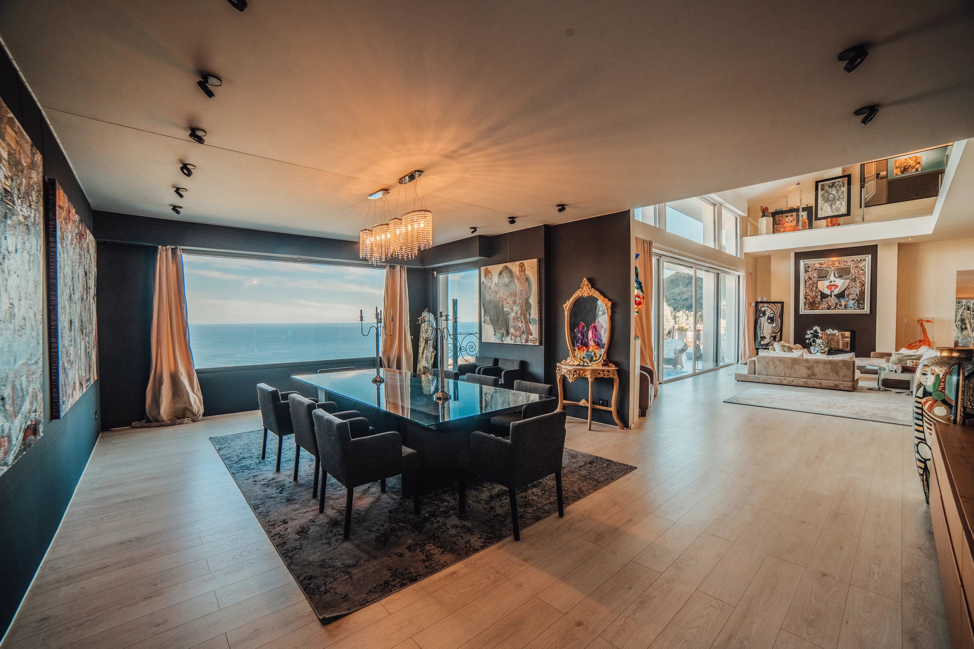 L'intérieur de la villa propose des équipements de bien-être exceptionnels, notamment un espace fitness moderne, un sauna relaxant et un spa luxueux, pour un confort absolu. Chaque pièce a été conçue avec une attention particulière aux détails et au design, offrant ainsi une atmosphère accueillante et élégante. Les larges baies vitrées inondent les espaces de lumière naturelle tout en offrant une vue imprenable sur la mer Méditerranée.