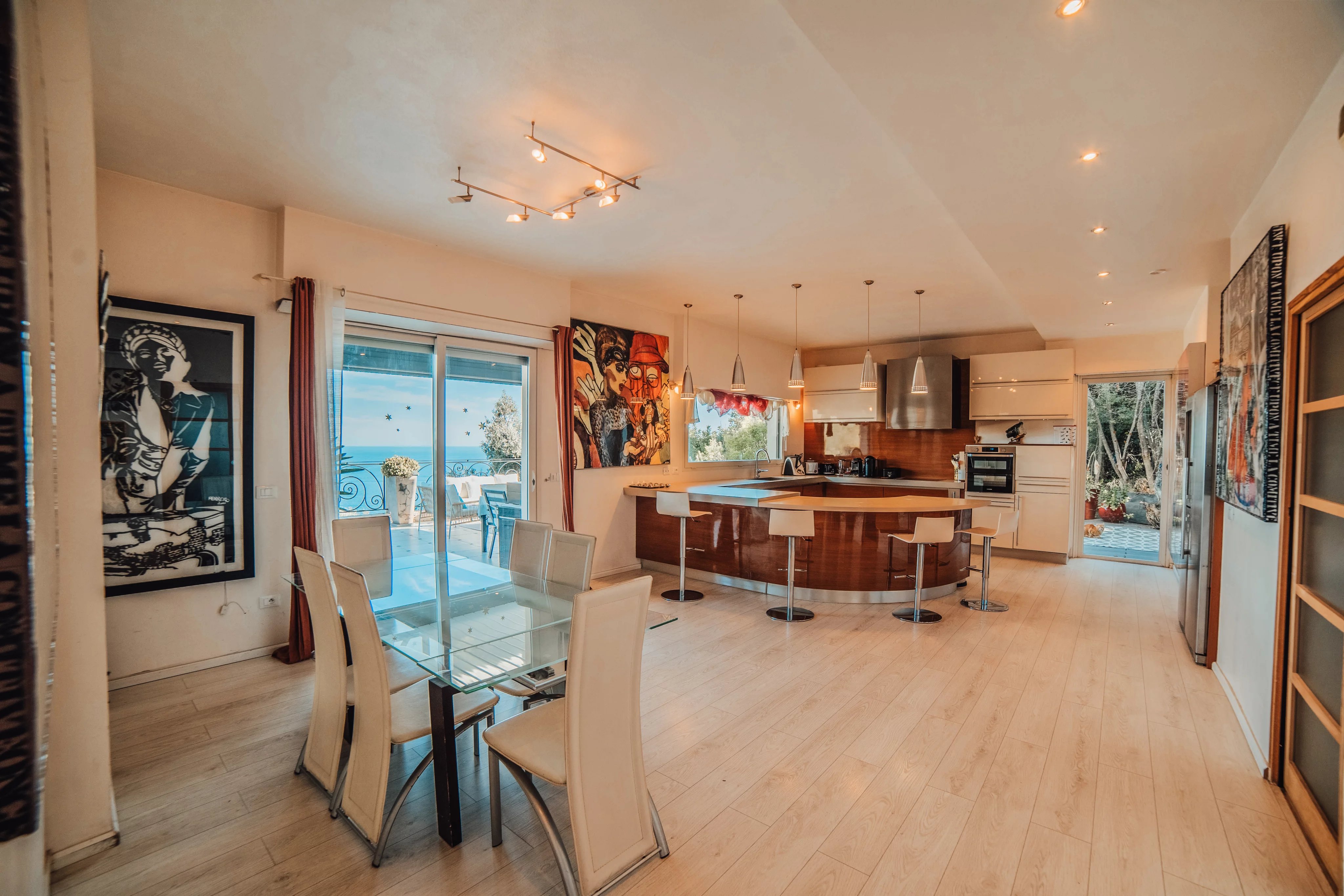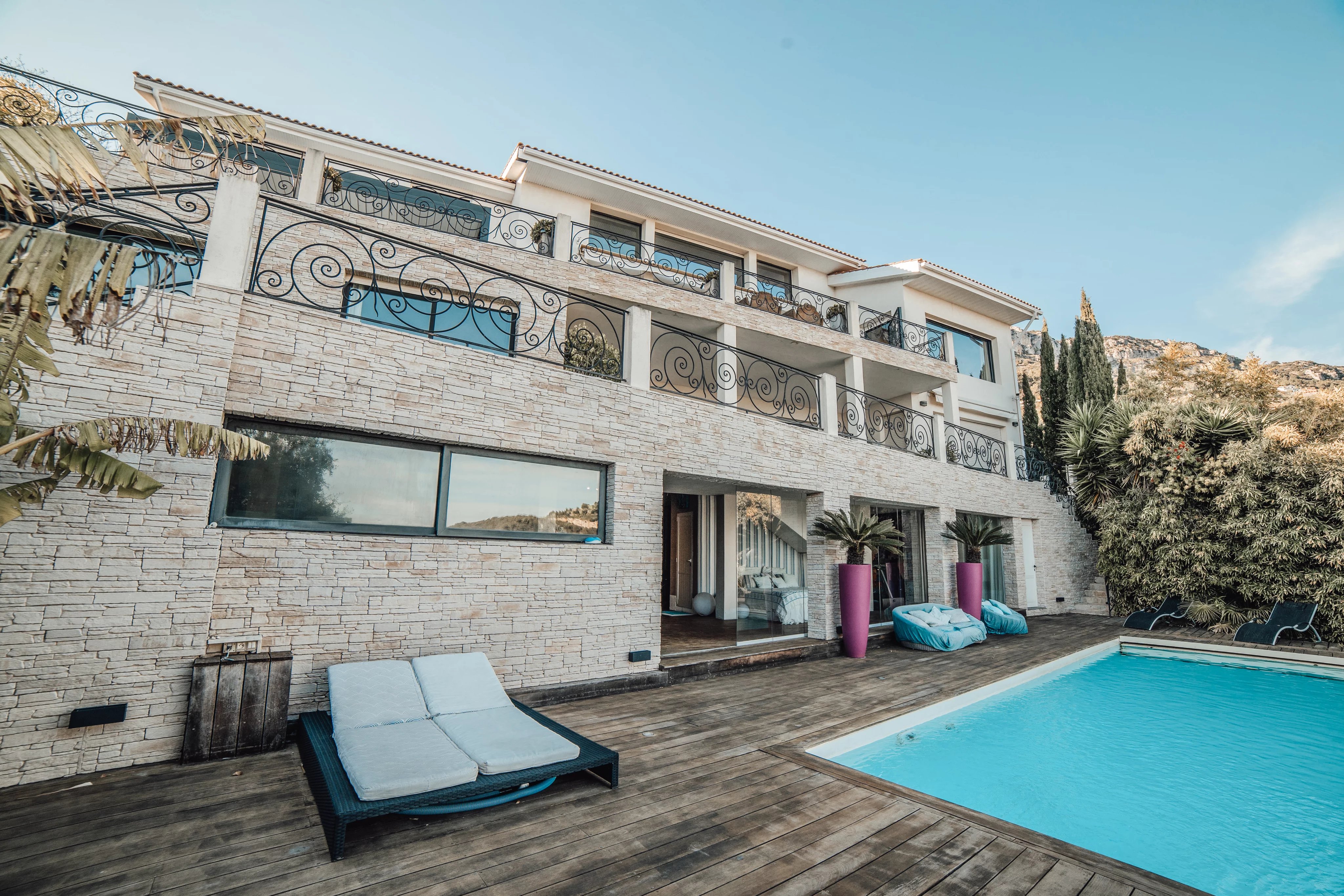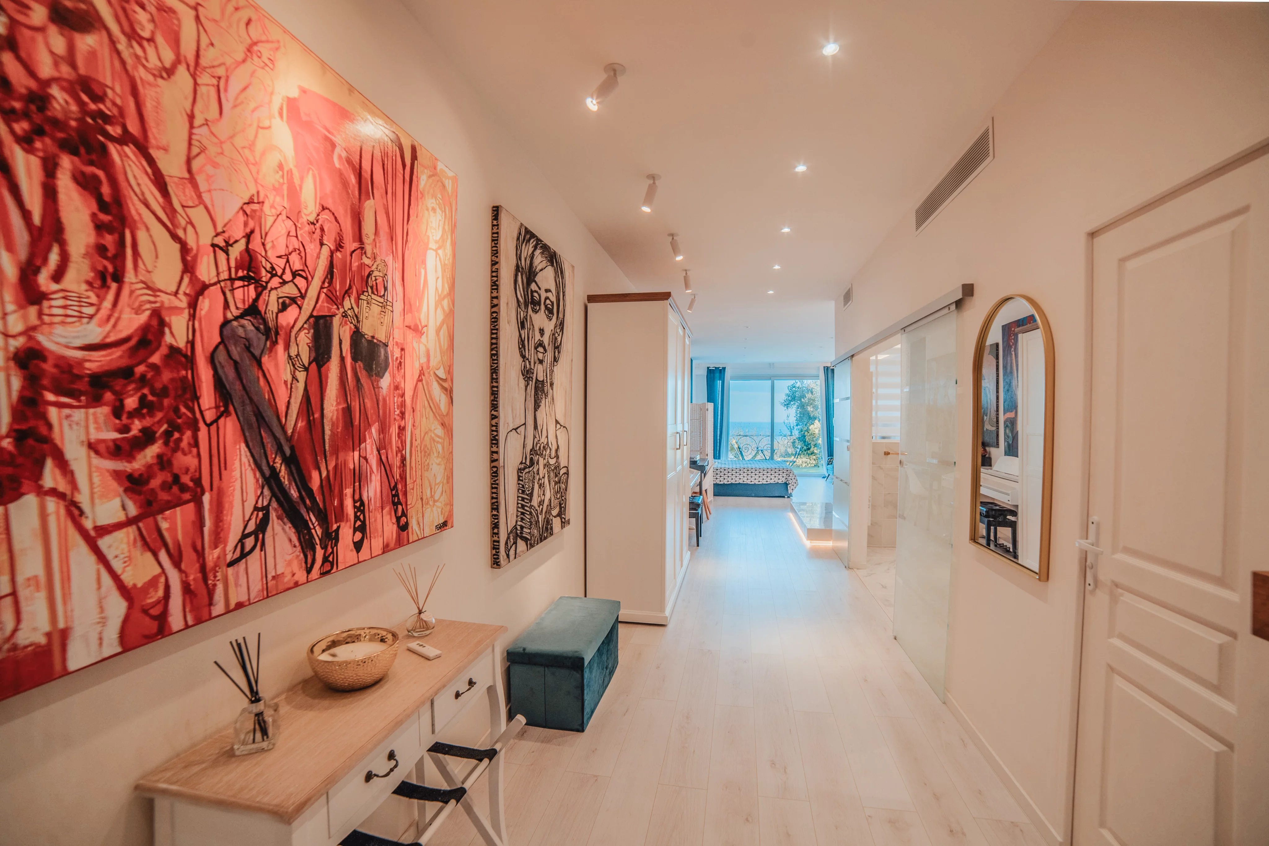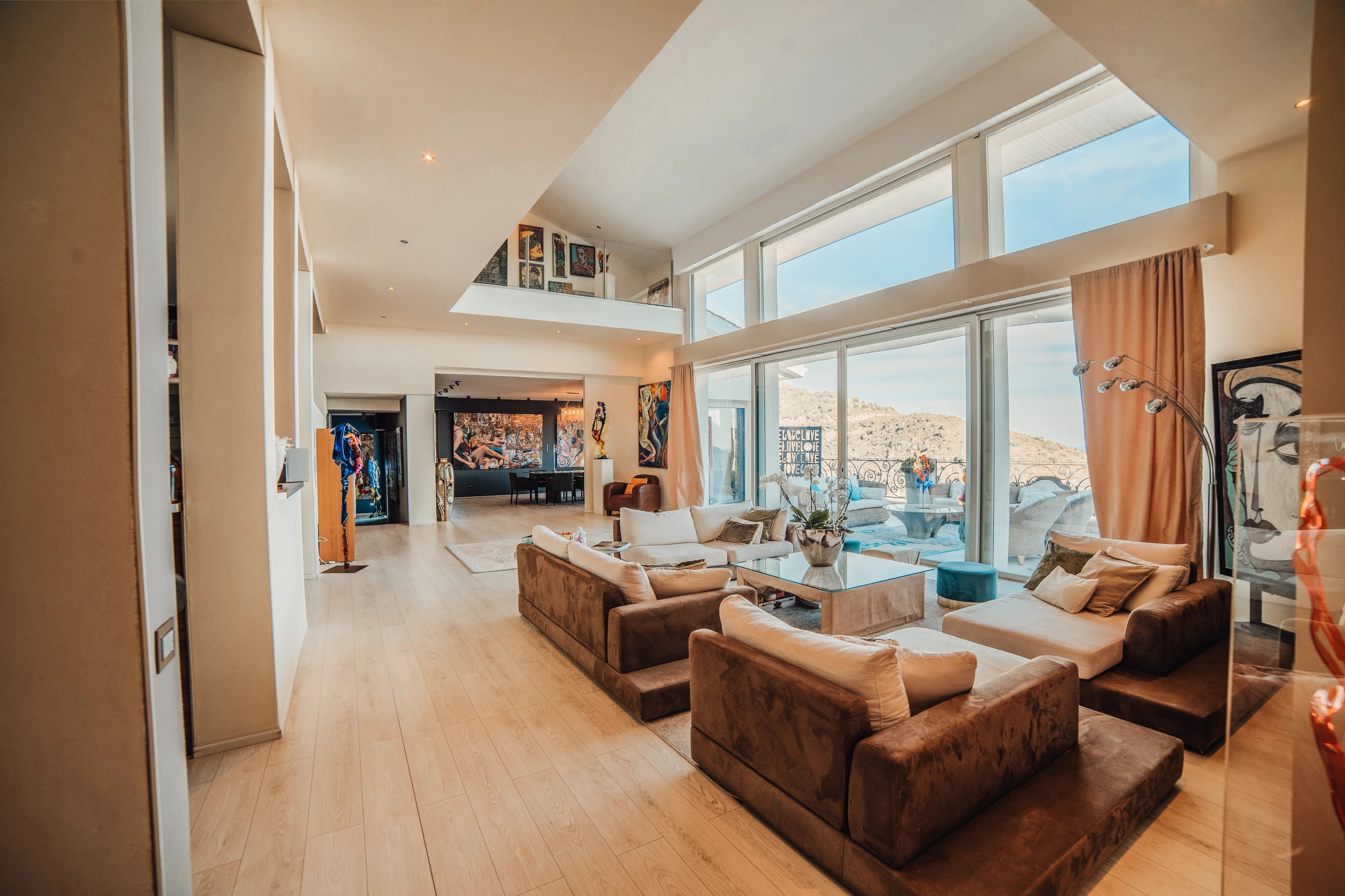 L'intérieur de la villa propose des équipements de bien-être exceptionnels, notamment un espace fitness moderne, un sauna relaxant et un spa luxueux, pour un confort absolu. Chaque pièce a été conçue avec une attention particulière aux détails et au design, offrant ainsi une atmosphère accueillante et élégante. Les larges baies vitrées inondent les espaces de lumière naturelle tout en offrant une vue imprenable sur la mer Méditerranée.