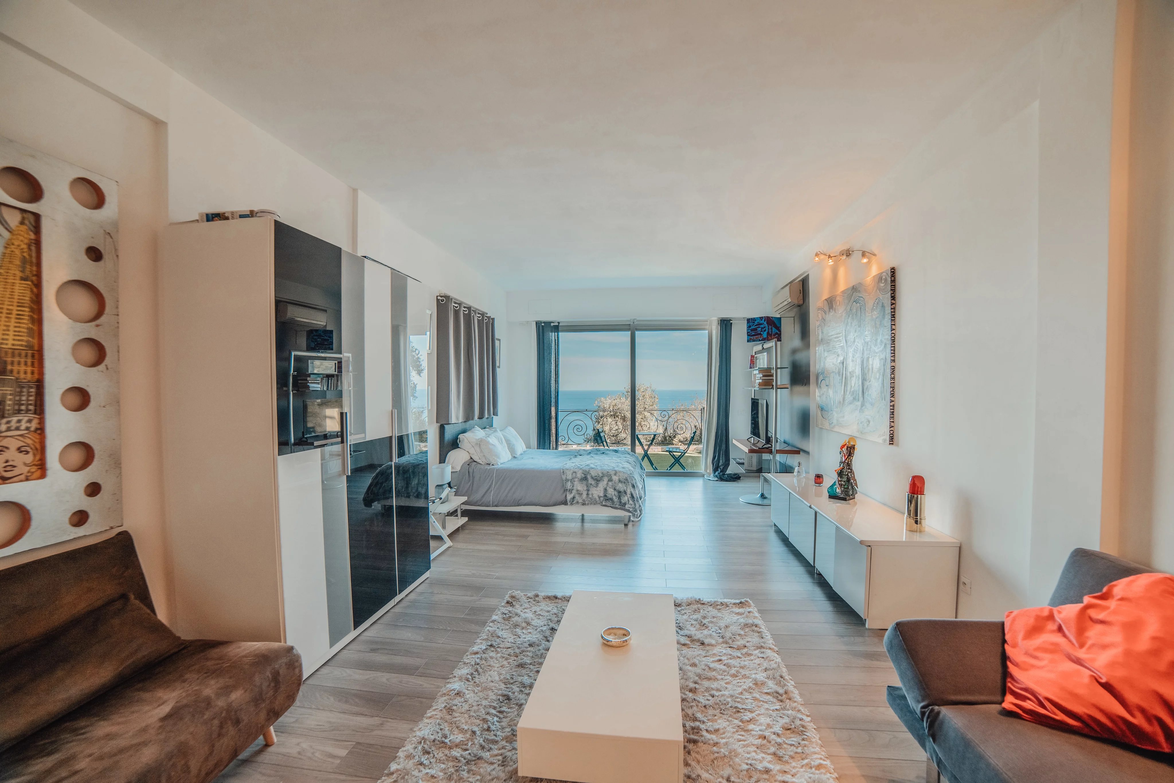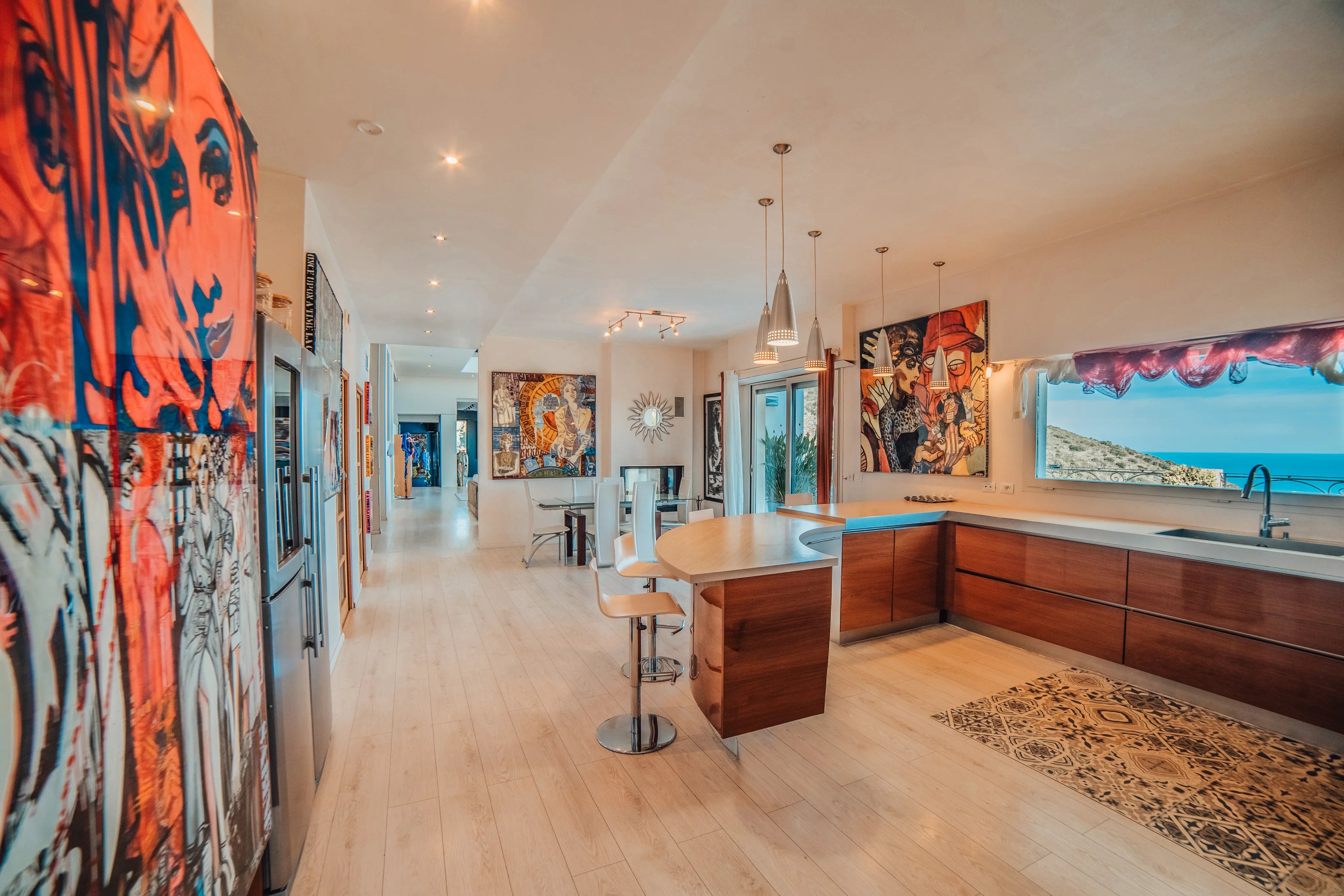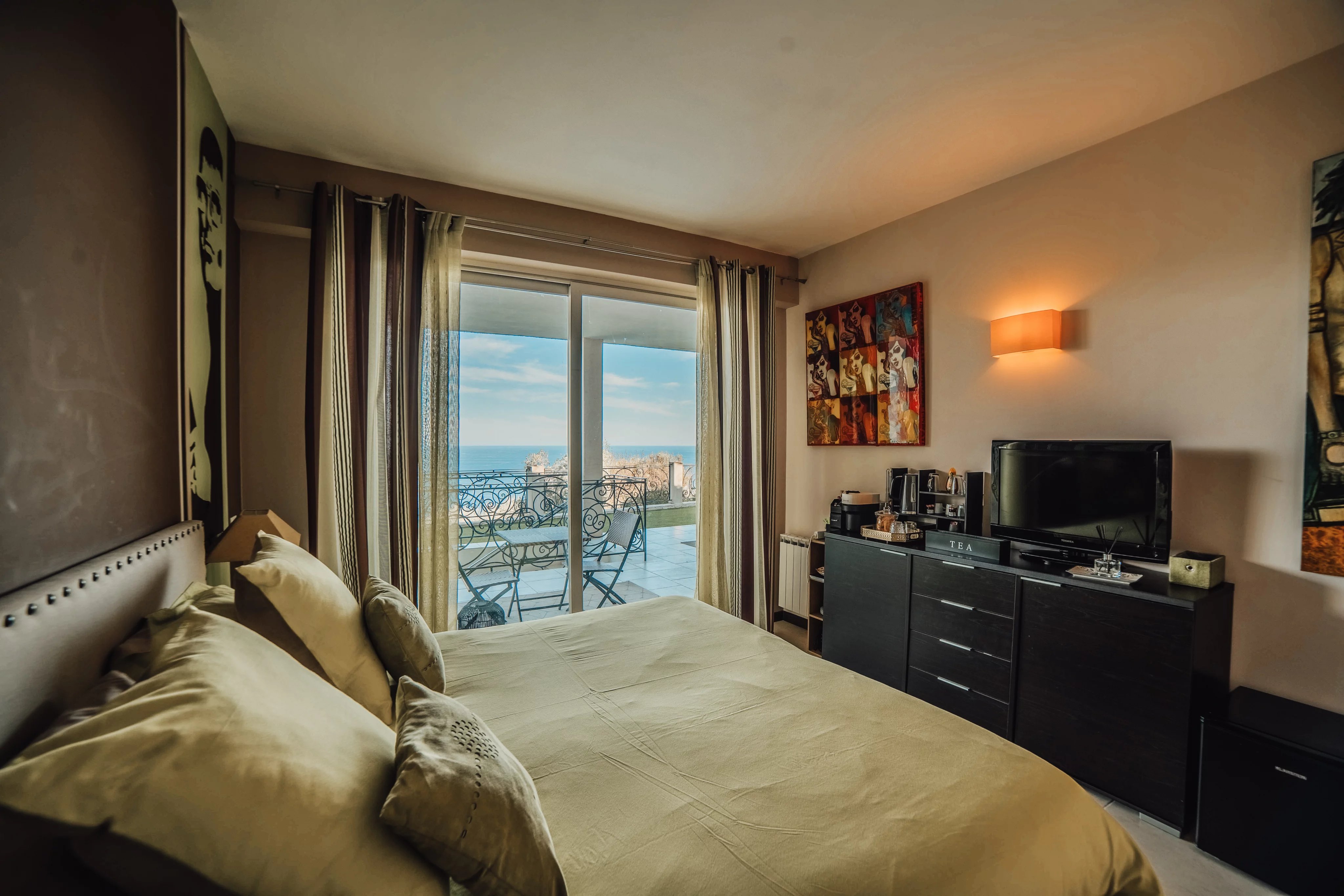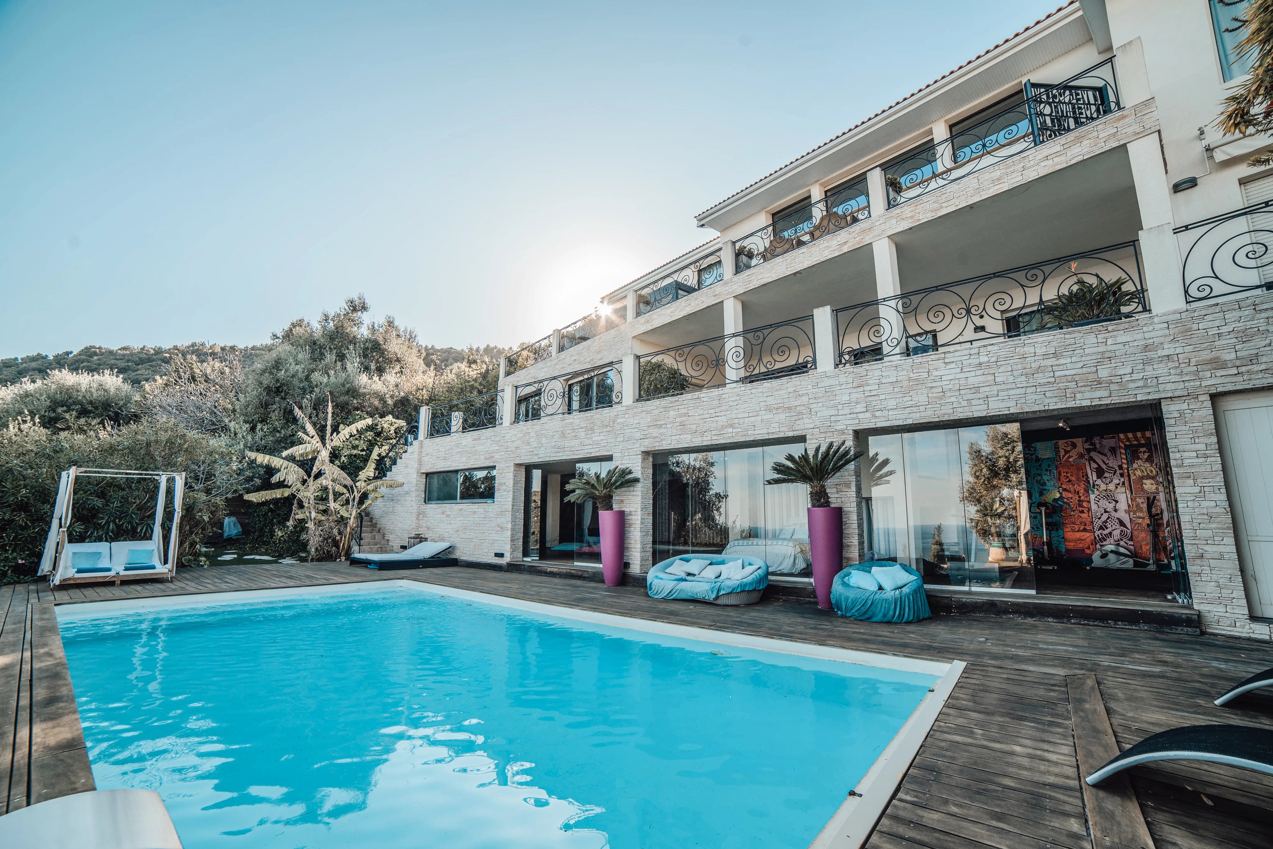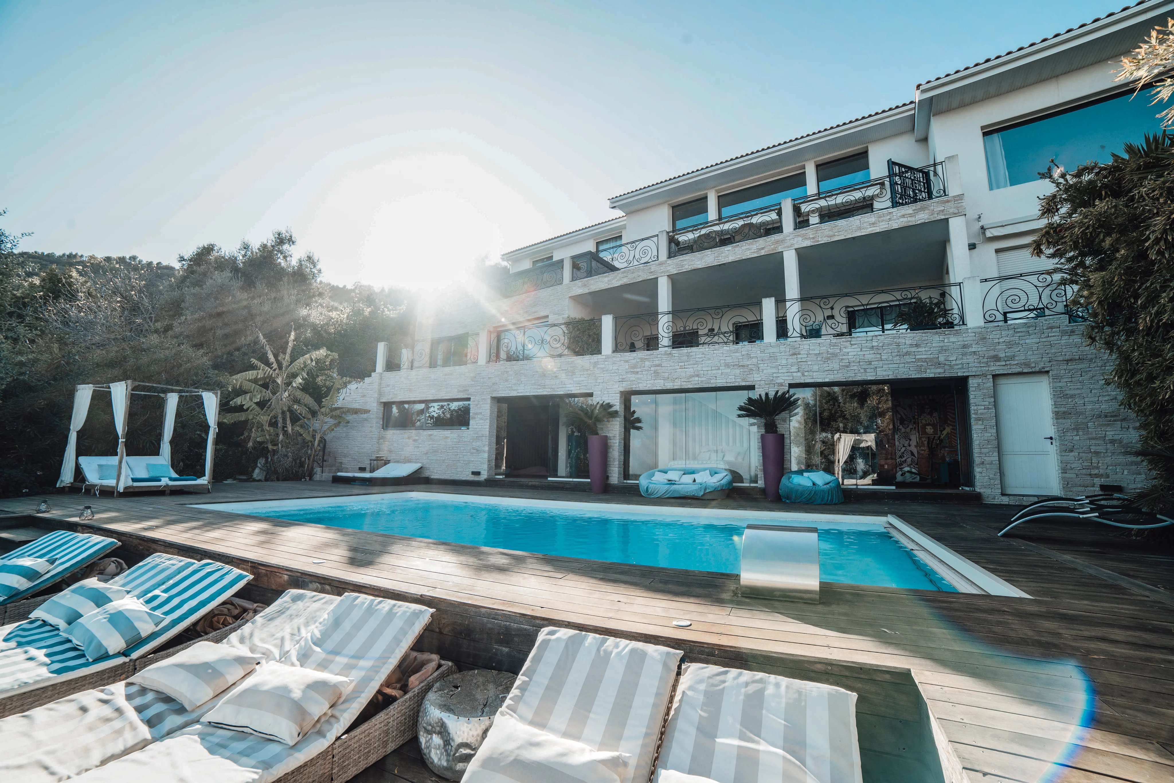 L'intérieur de la villa propose des équipements de bien-être exceptionnels, notamment un espace fitness moderne, un sauna relaxant et un spa luxueux, pour un confort absolu. Chaque pièce a été conçue avec une attention particulière aux détails et au design, offrant ainsi une atmosphère accueillante et élégante. Les larges baies vitrées inondent les espaces de lumière naturelle tout en offrant une vue imprenable sur la mer Méditerranée.