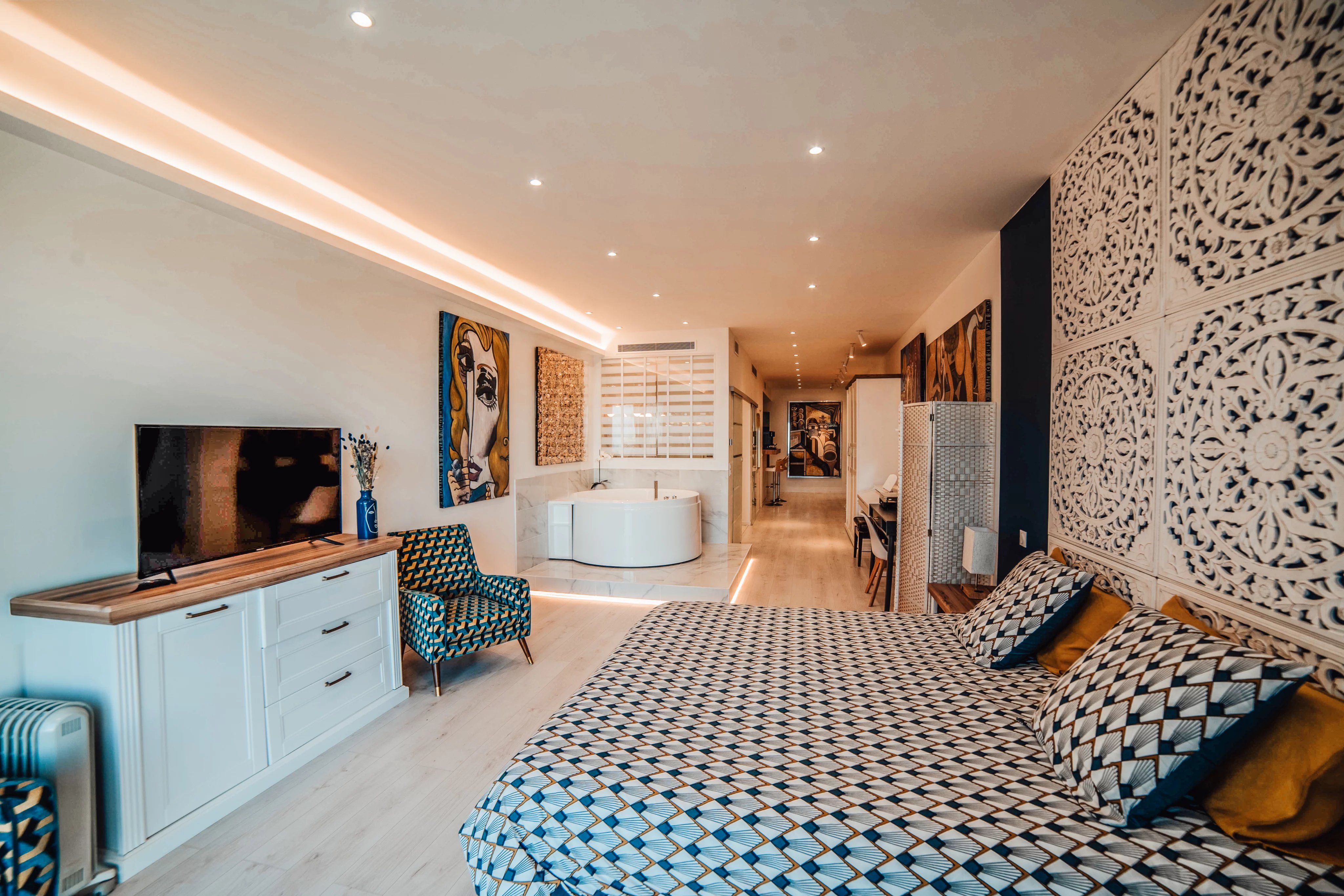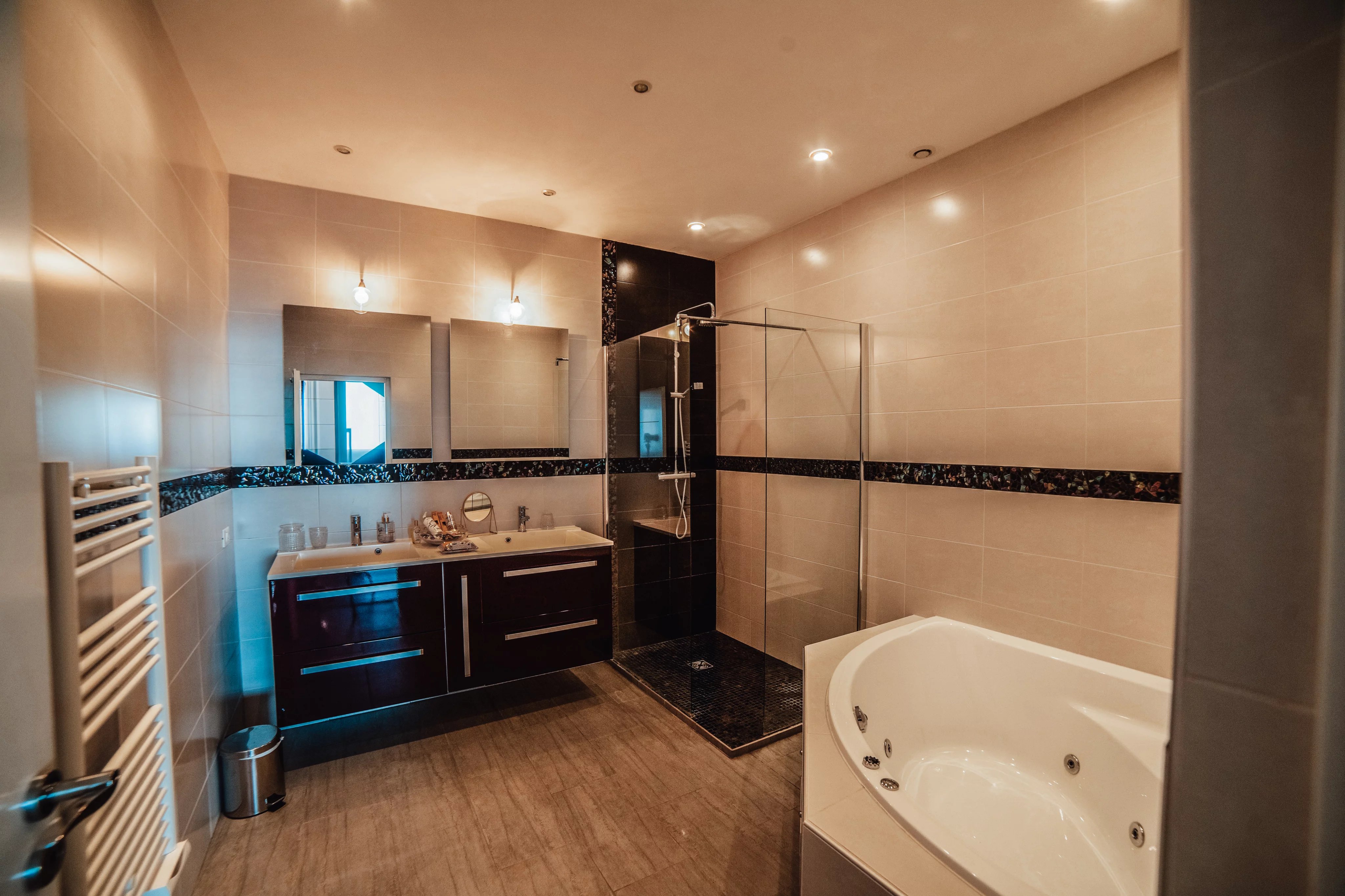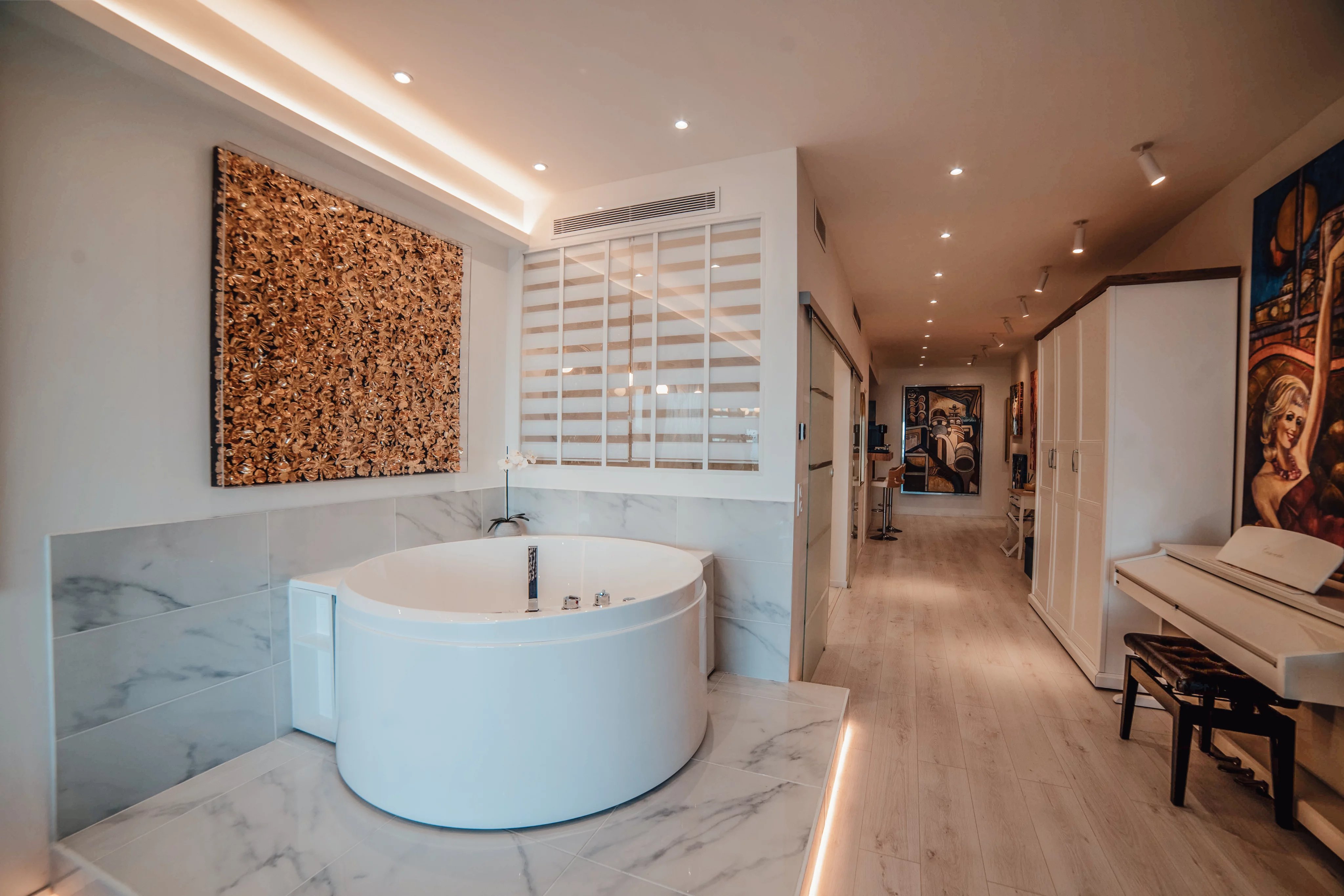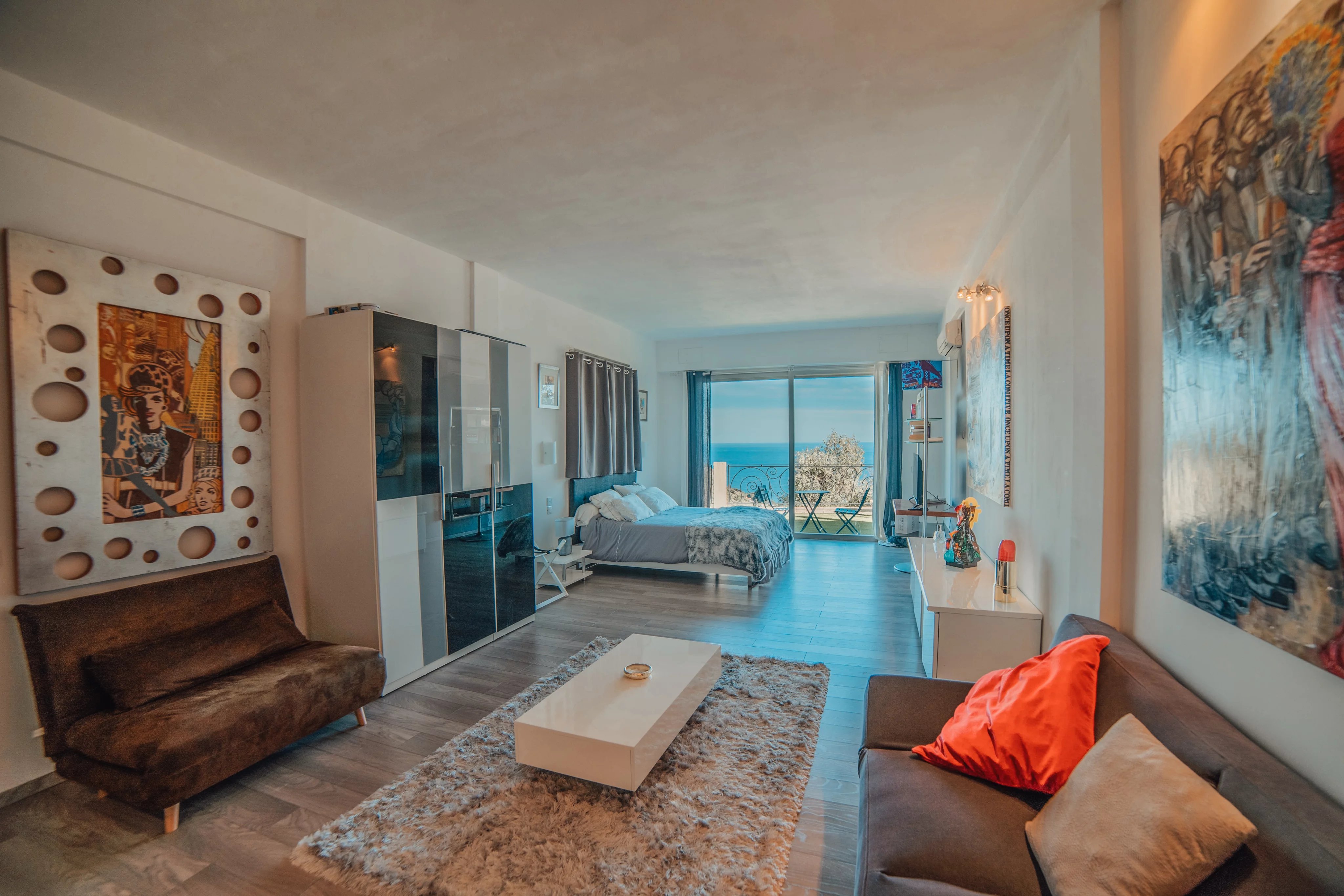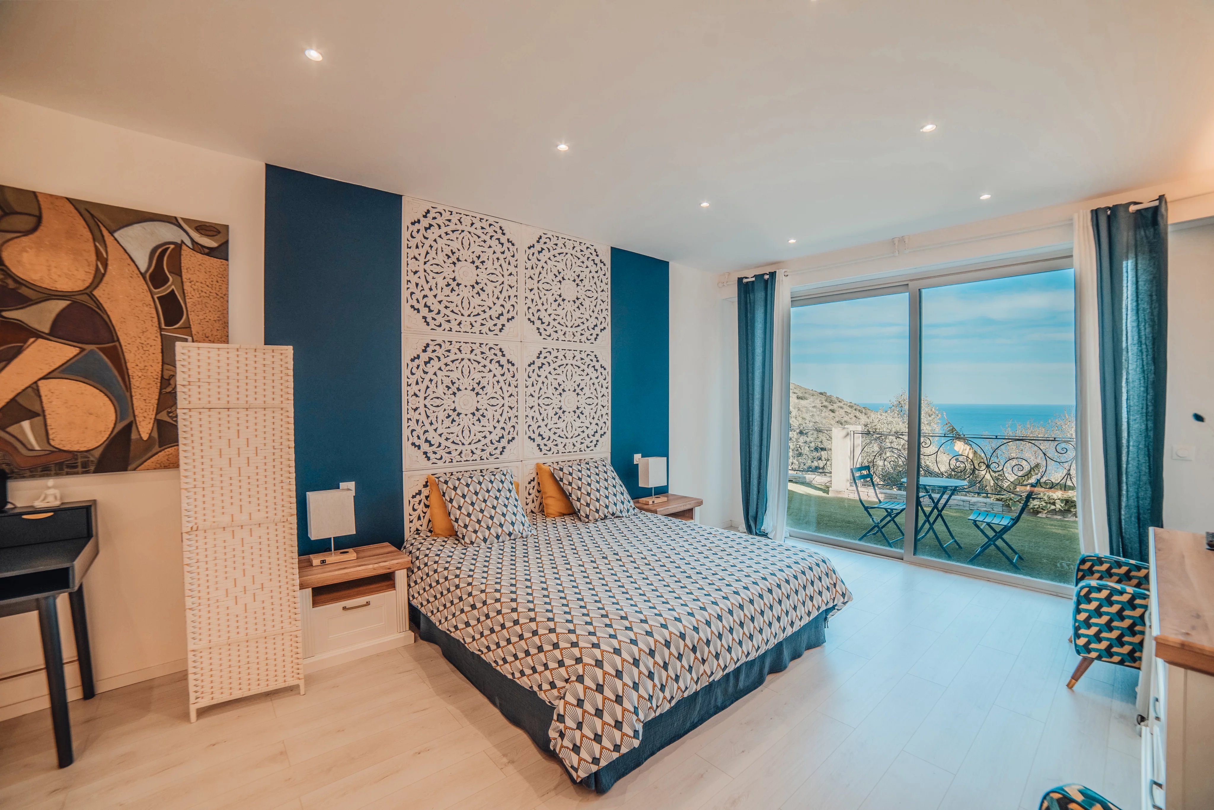 L'intérieur de la villa propose des équipements de bien-être exceptionnels, notamment un espace fitness moderne, un sauna relaxant et un spa luxueux, pour un confort absolu. Chaque pièce a été conçue avec une attention particulière aux détails et au design, offrant ainsi une atmosphère accueillante et élégante. Les larges baies vitrées inondent les espaces de lumière naturelle tout en offrant une vue imprenable sur la mer Méditerranée.